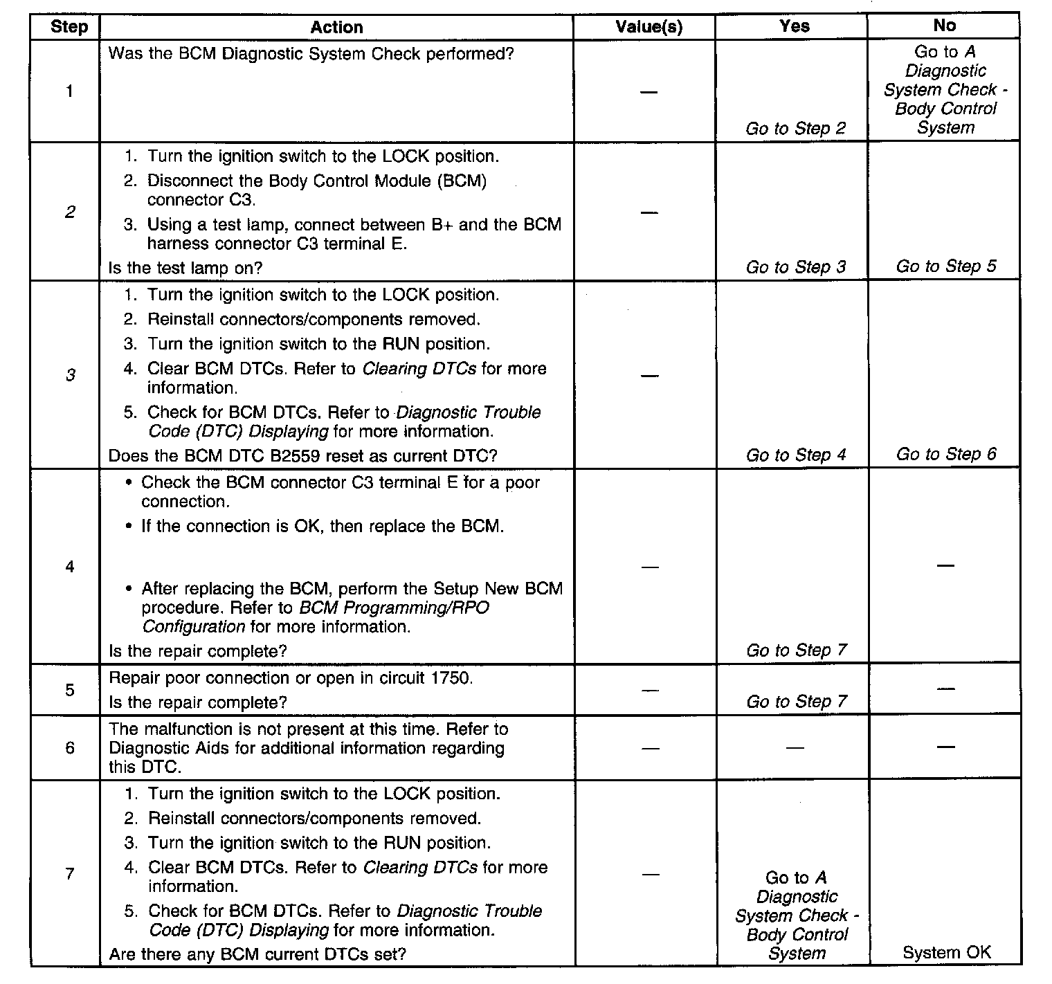 3. This step determines whether the condition is intermittent or the BCM is faulty.