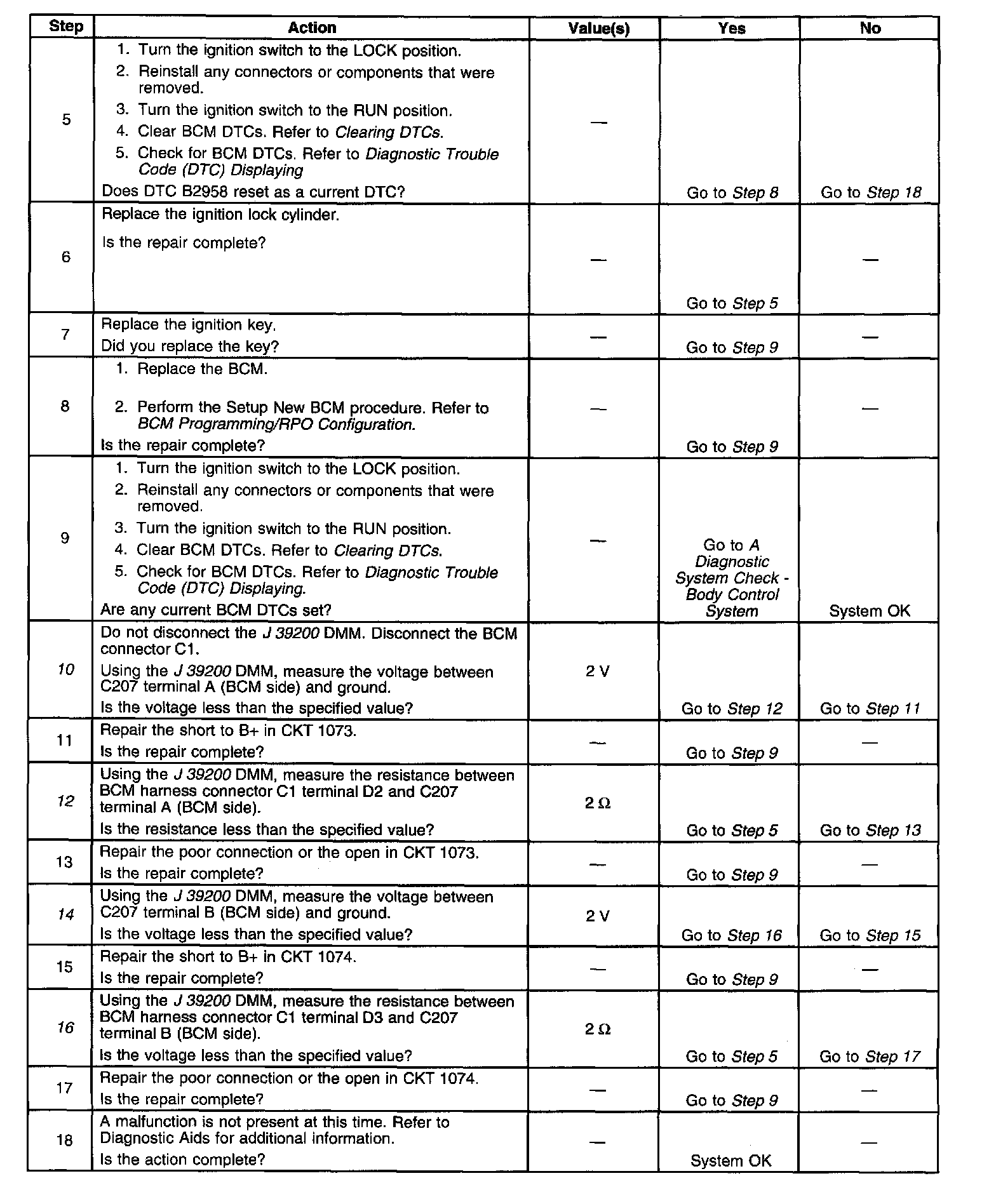 ^ The BCM stores DTC B2958 in the memory.