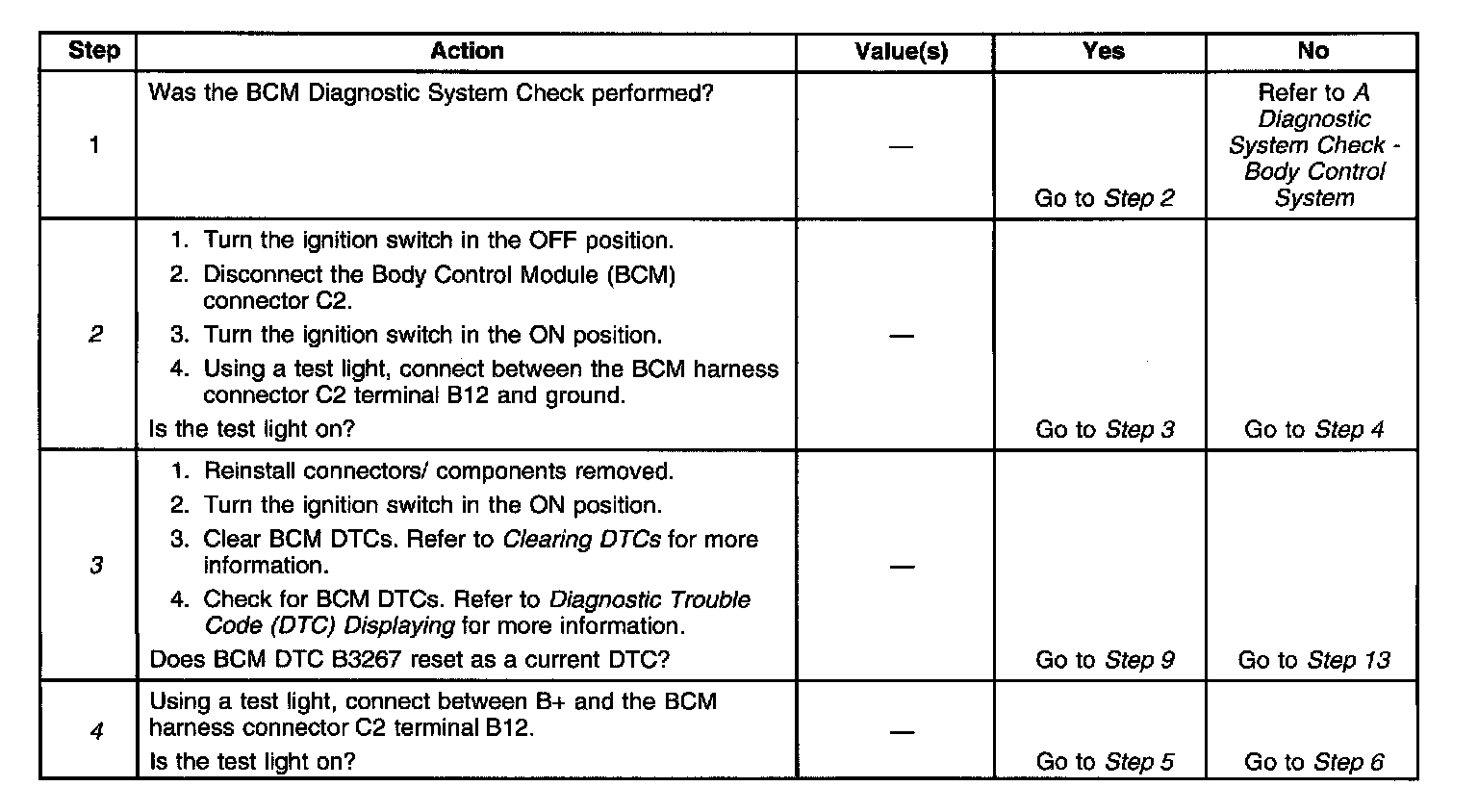 ^ The BCM is open or shorted to ground internally.