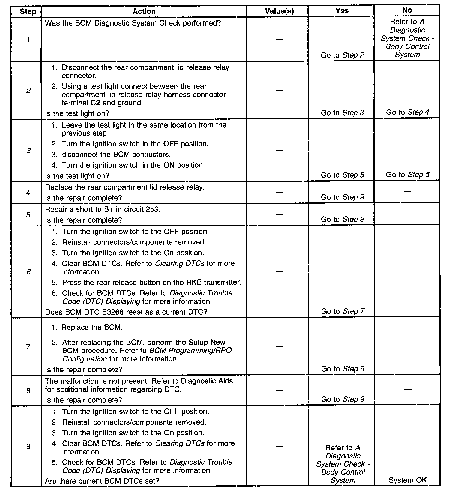 ^ The BCM test for a short to B+ in circuit 253 only when attempting to release the rear compartment.