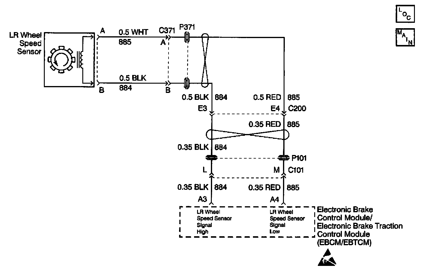 The speed sensor used on this vehicle is a multiple pole magnetic pickup. This sensor produces an AC signal that the EBCM/EBTCM uses the frequency from to calculate the wheel speed.