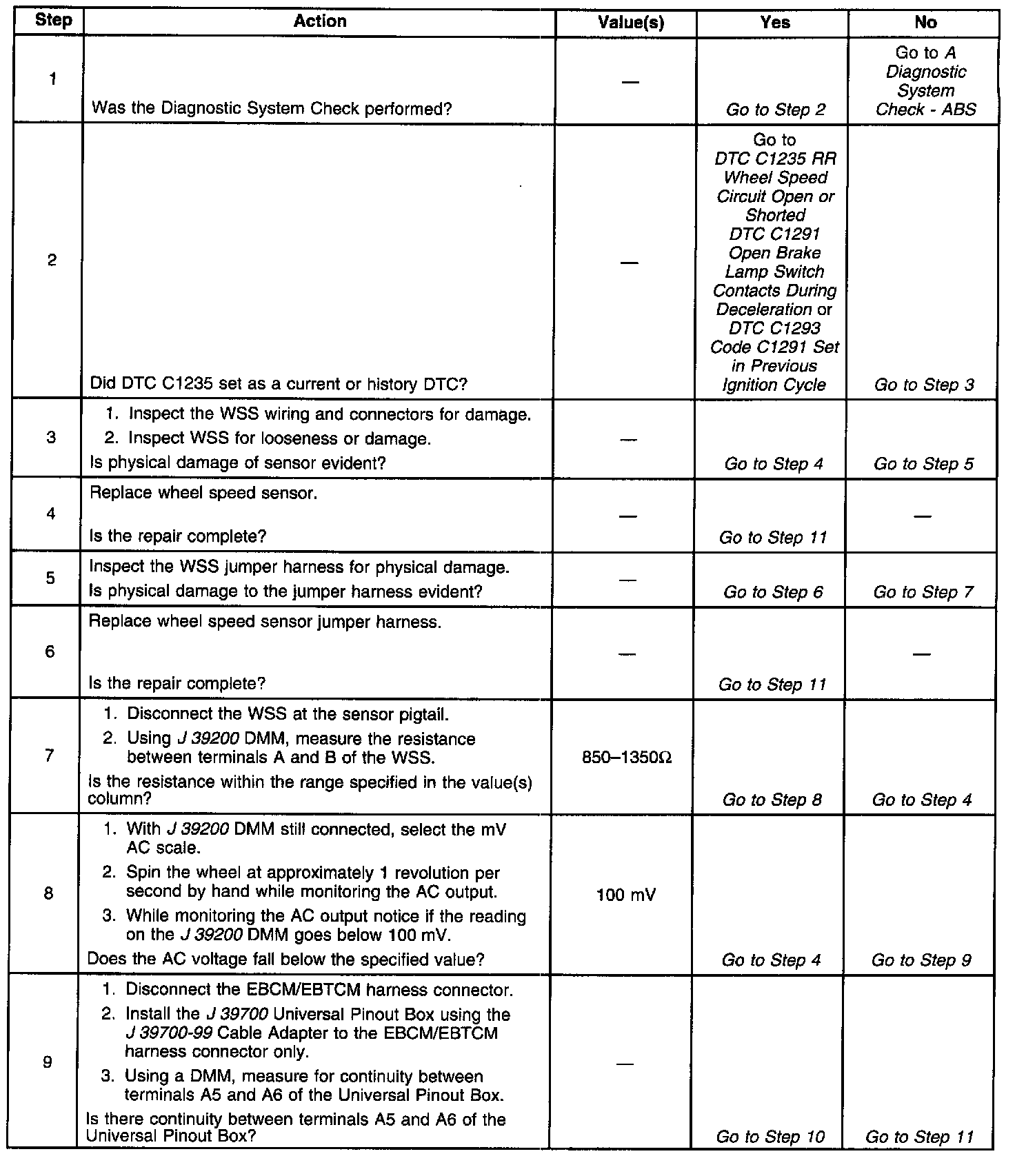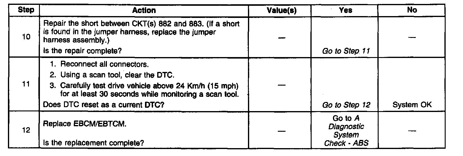 This DTC will set anytime the EBCM sees a wheel speed variation of more than 24 Km/h (15 mph) in 0.01 seconds. The 14 Km/h (15 mph) change must occur 5 times with less than 1.00 seconds between each occurrence for a code to be set.