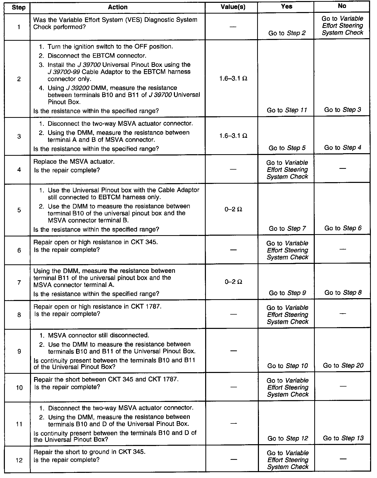 DTC C1241 is set when the ignition voltage is between 17.0 and 10.5 volts, and either of the MSVA steering system actuator circuits (CKT 1787 or CKT 345) become open or shorted.