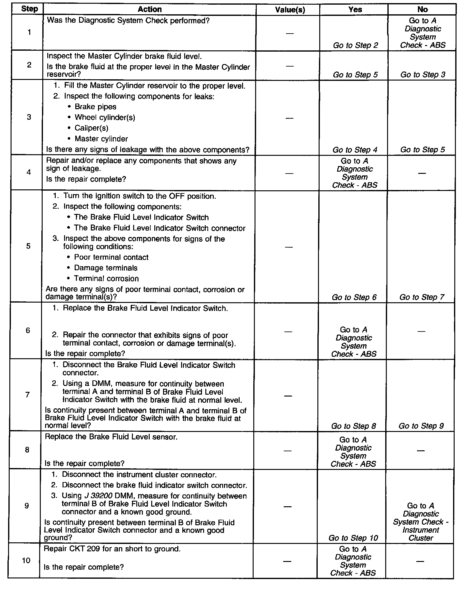 - Brake fluid level indicator switch line (CKT209) short to ground.