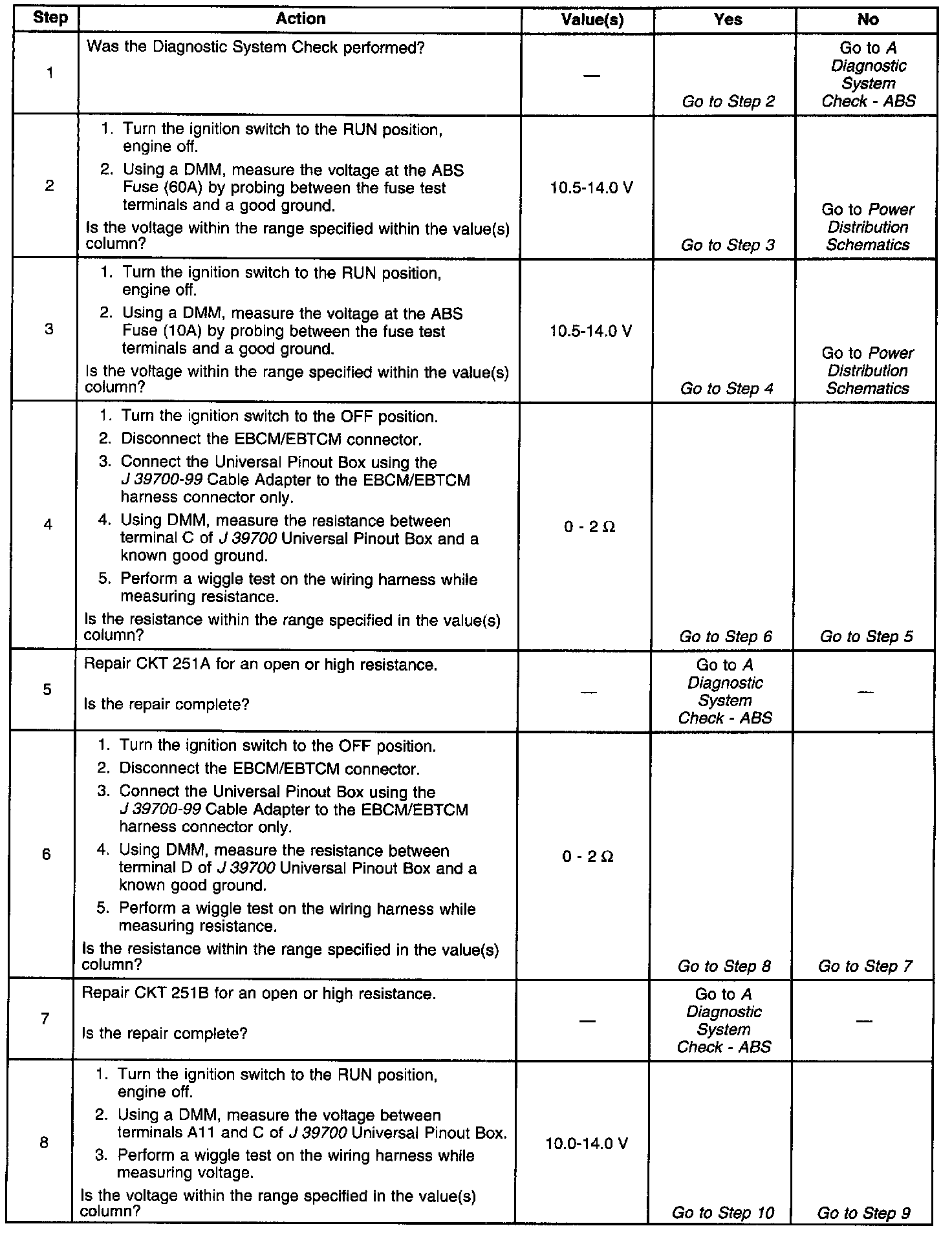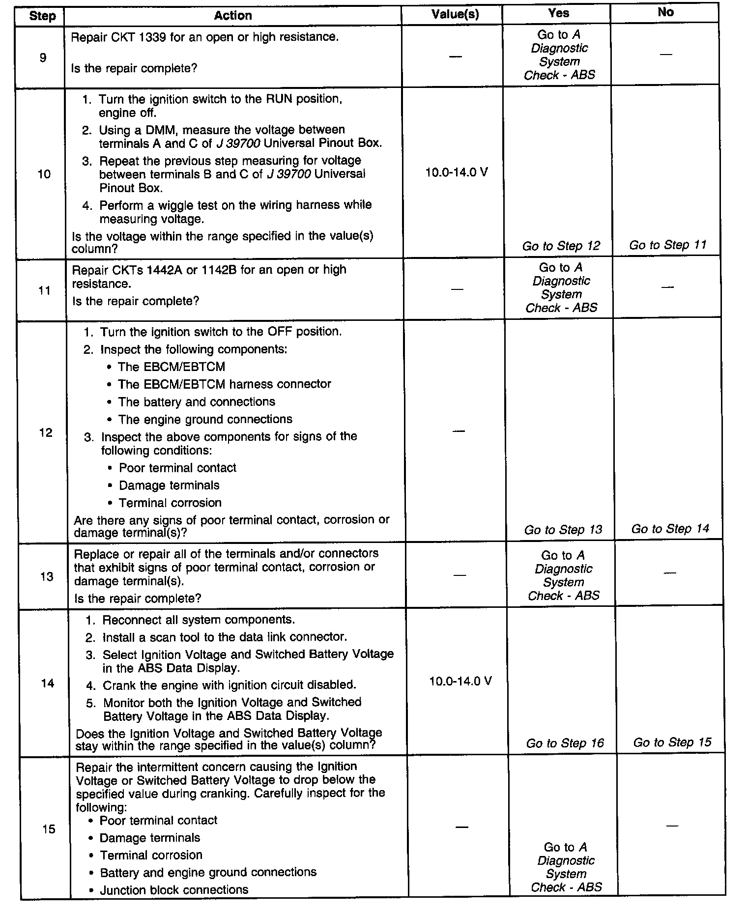 ^ If an intermittent malfunction exists refer to Intermittents and Poor Connections Diagnosis in Diagnostic Aids.