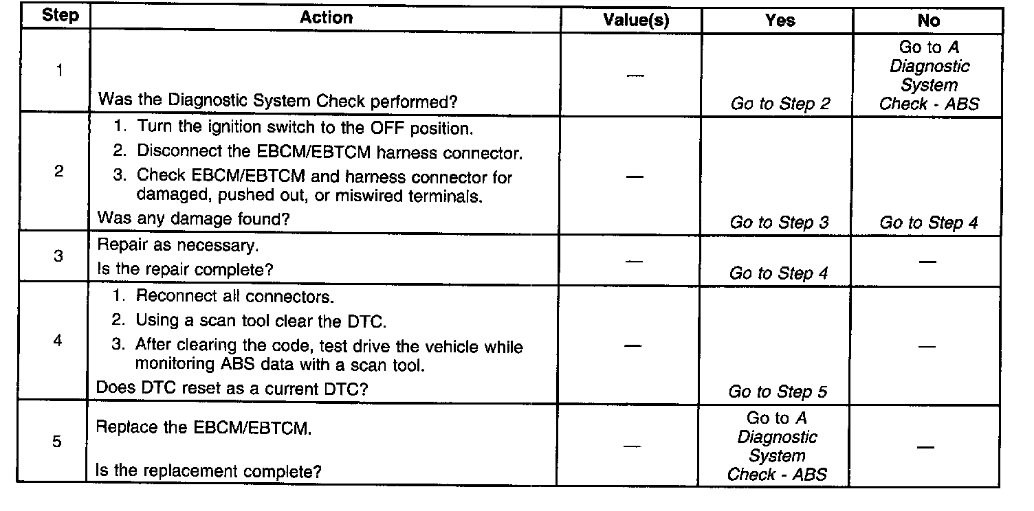 This DTC identifies a malfunction within the EBCM/EBTCM. When the EBCM/EBTCM relay is activated (turned on), voltage is supplied to the valve solenoids and pump motor.