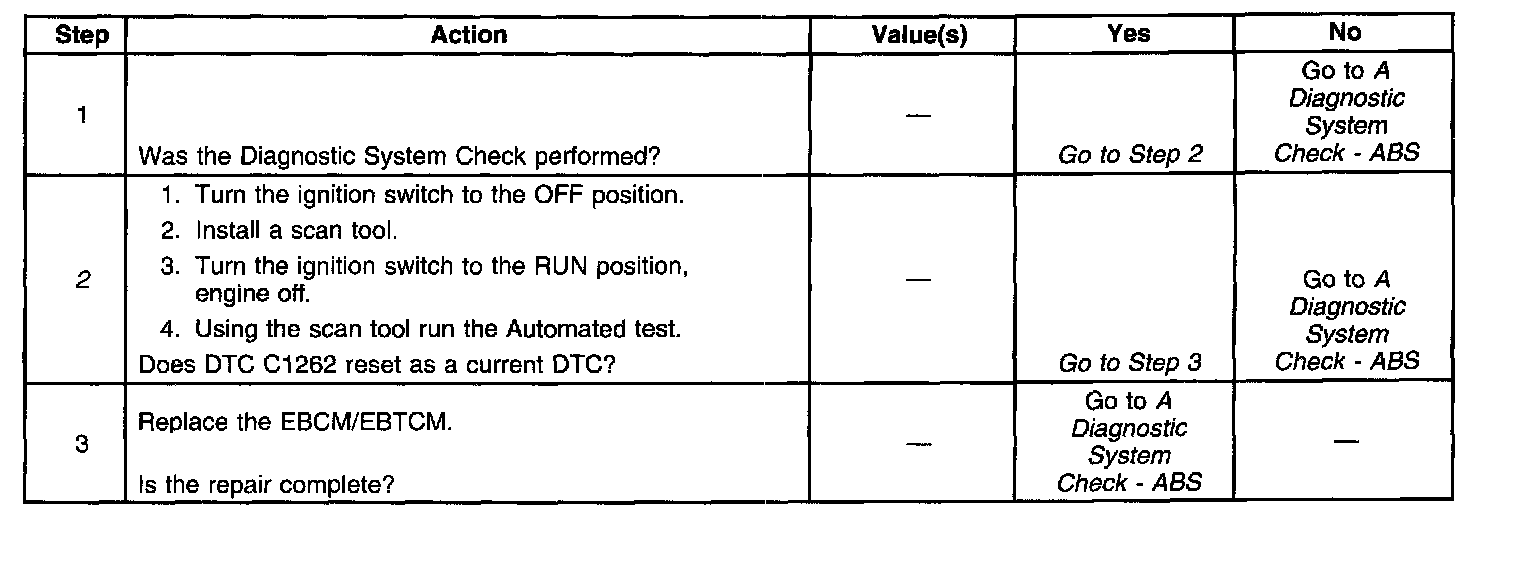 The solenoid valve circuit and the solenoid coil are internal to the EBCM/EBTCM. No part of the solenoid circuit is diagnosable external to the EBCM/EBTCM. The DTC sets when there is a malfunction in the solenoid circuit internal to the EBCM/EBTCM only.