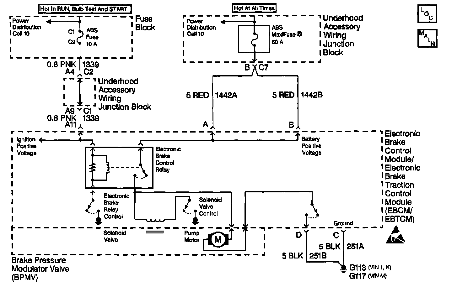 The outlet valve solenoid circuits are supplied with battery power when the ignition is in the ON position. The EBCM/EBTCM controls the valve functions by grounding the circuit when necessary.