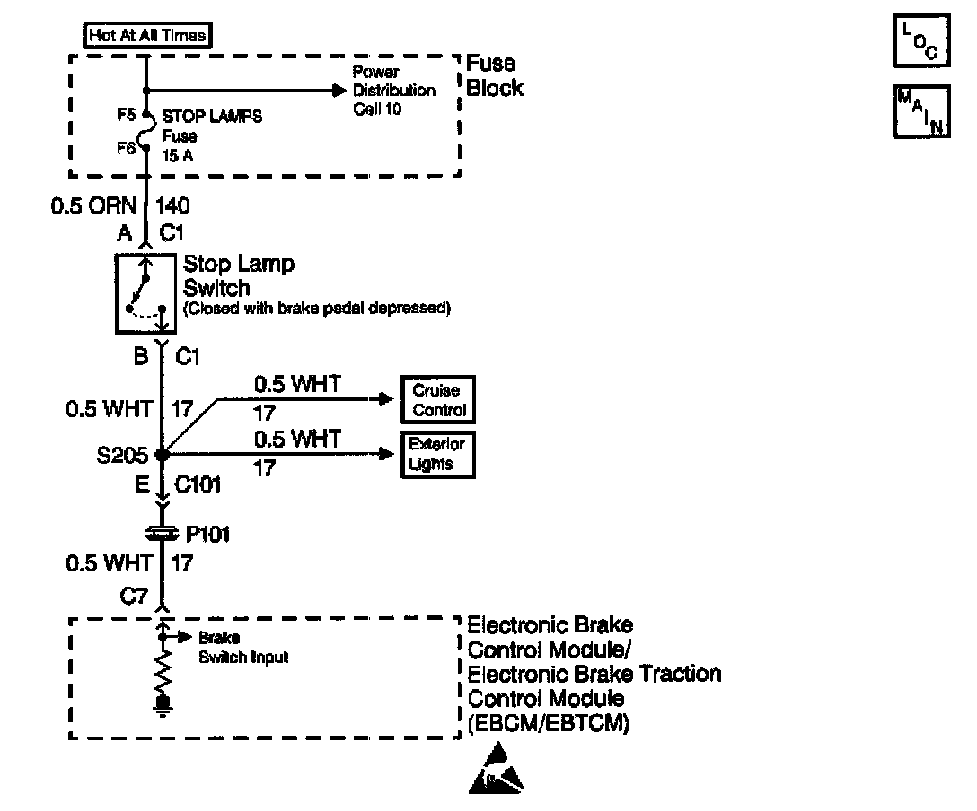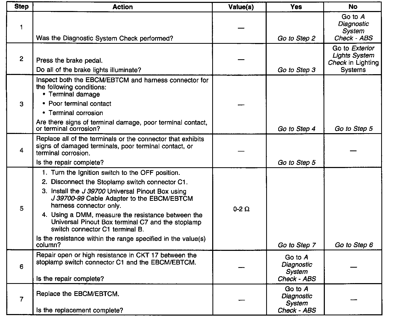 ^ The EBCM/EBTCM senses an open circuit condition for 2 seconds or more in all brake lamps.