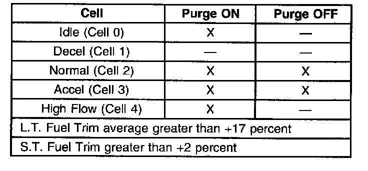 The vehicle may have to be operated in all of the above conditions before the PCM determines fuel trim status. The amount of fuel trim deviates from 0% in each cell and the amount that each cell is used directly affects whether or not the vehicle must be operated in all of the cells described above to complete the diagnostic.