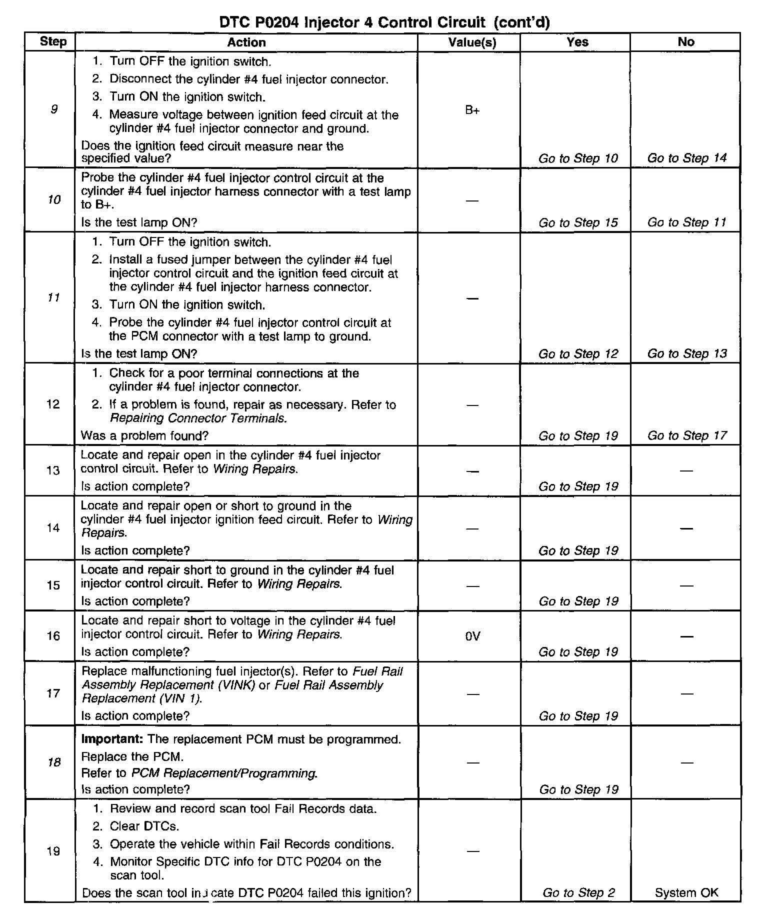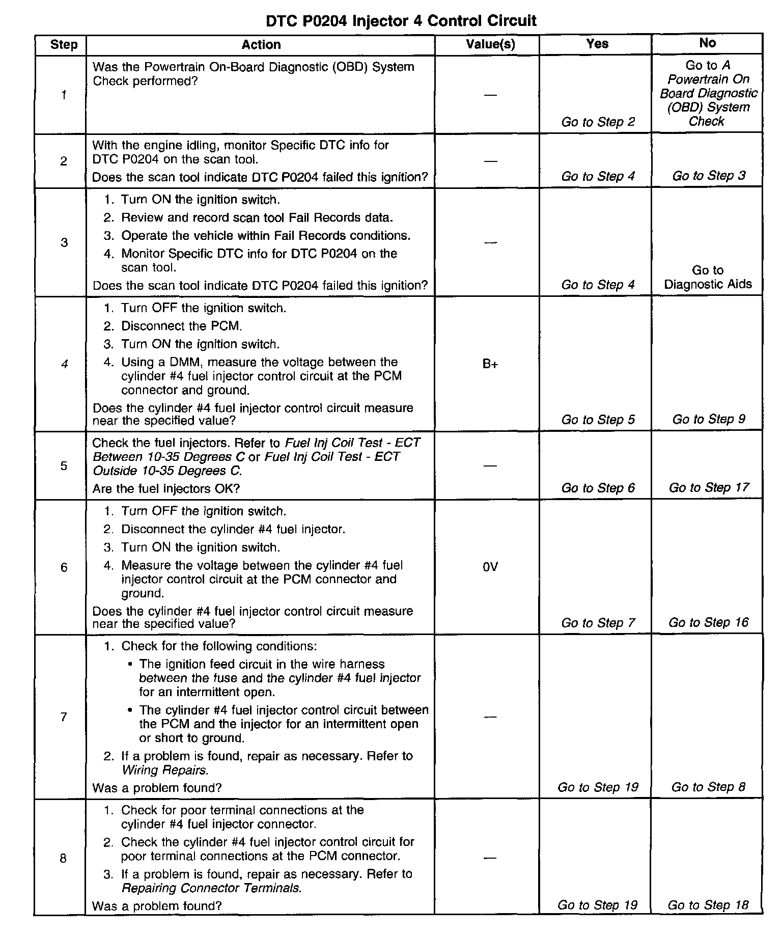 4. Checks for malfunctioning fuel injector control circuit or ignition feed wiring.