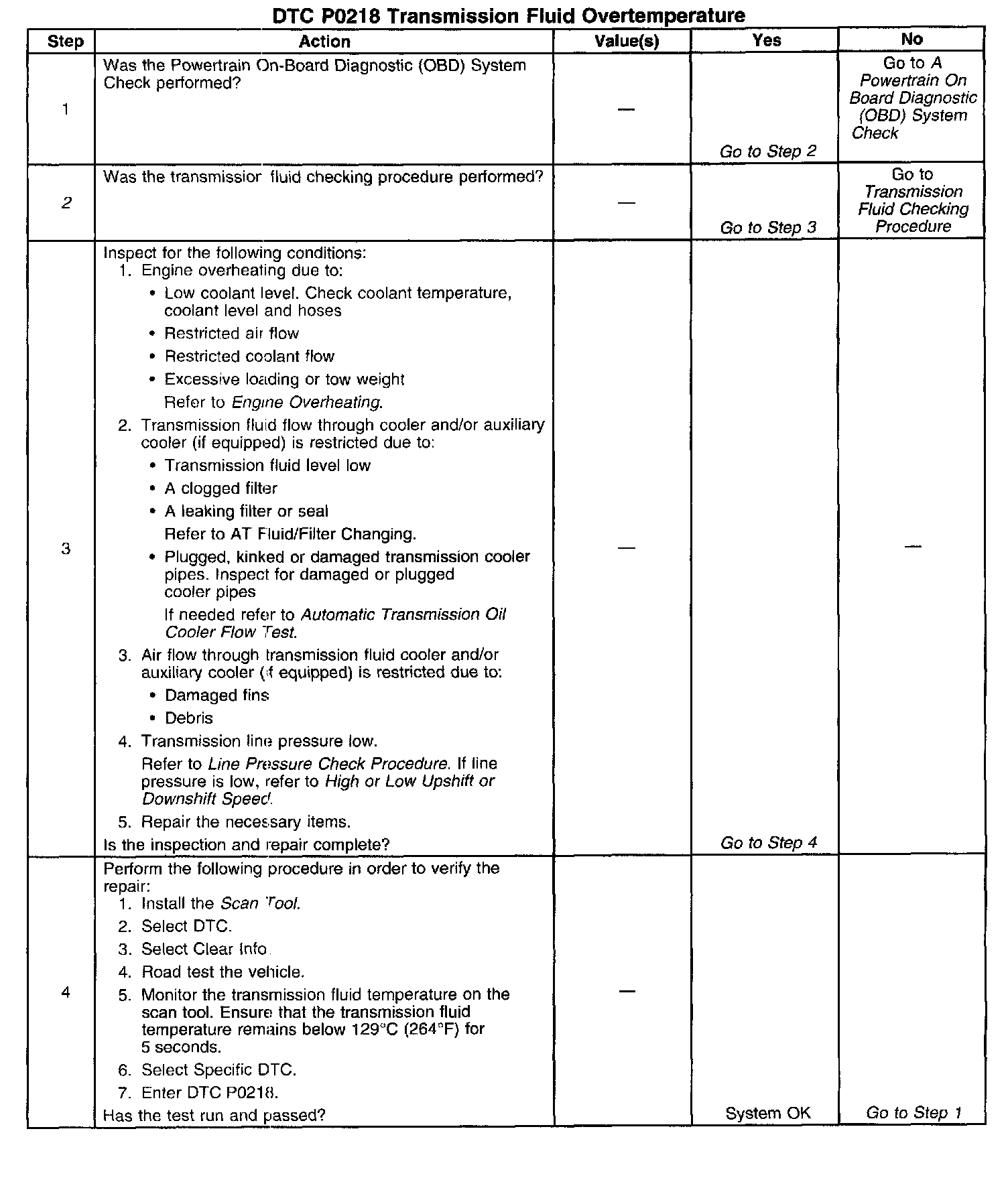 If the powertrain control module (PCM) detects a high temperature on the transmission fluid temperature (TFT) sensor circuit for an extended period of time, then DTC P0218 sets. DTC P0218 is a type D DTC.