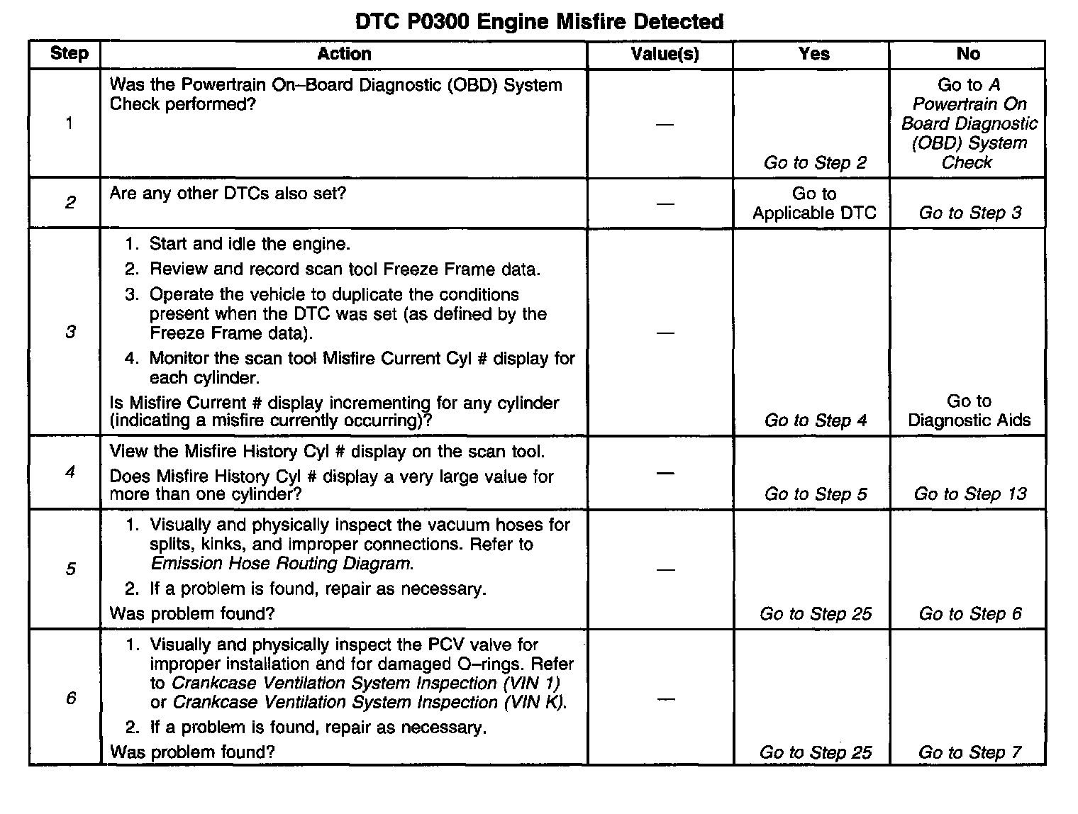 5. Steps 5 through 12 check for conditions that can cause a random cylinder misfire.
