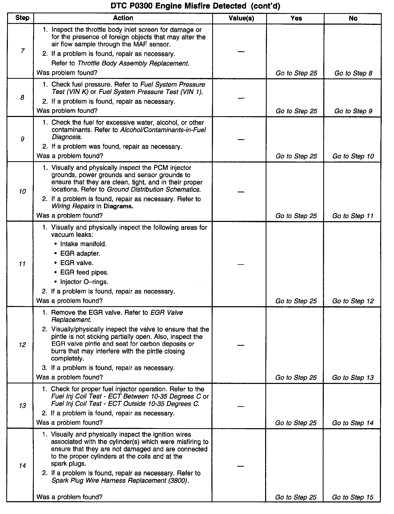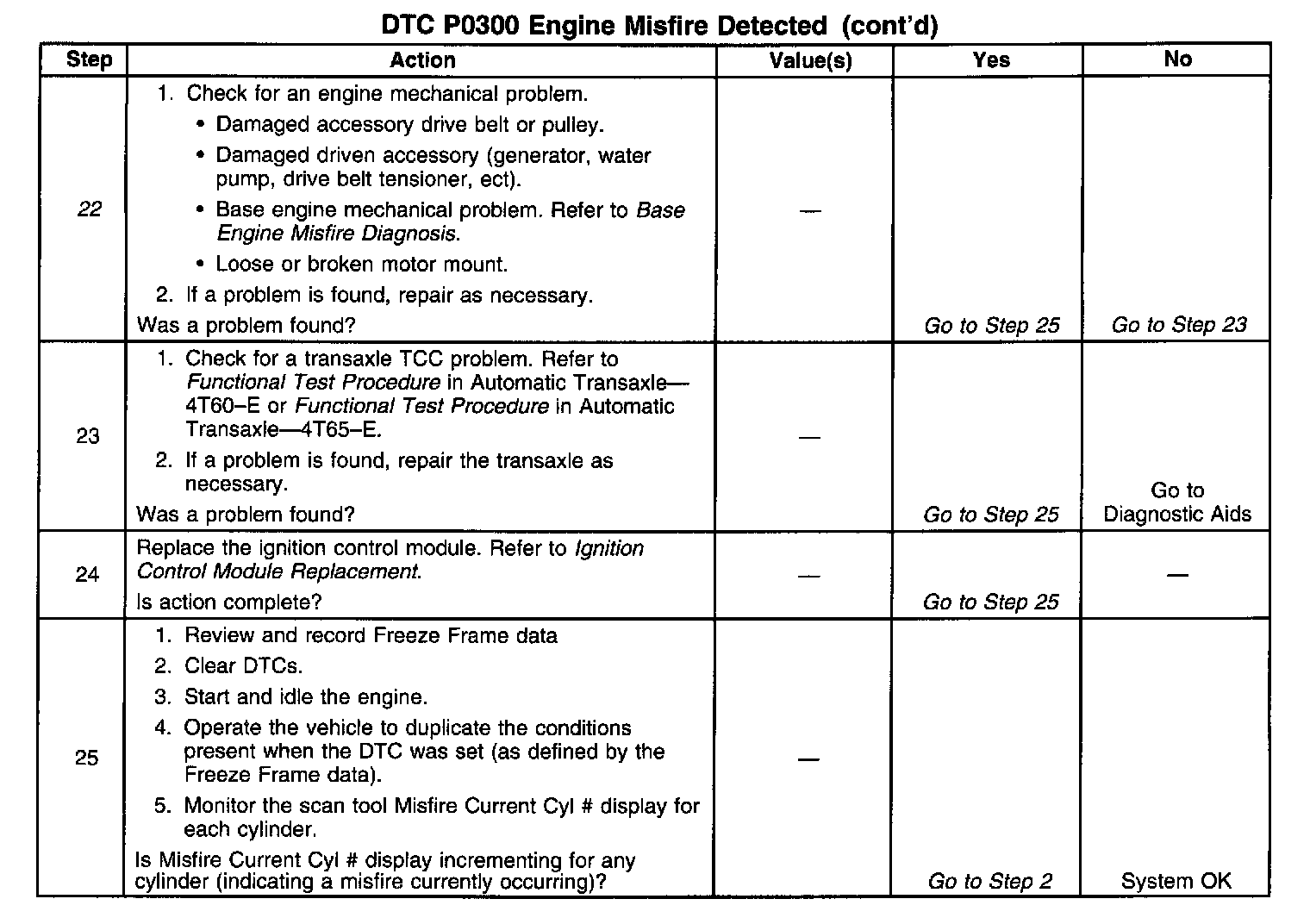 13. Steps 13 through 23 check for conditions that can cause a non-random or single cylinder misfire.