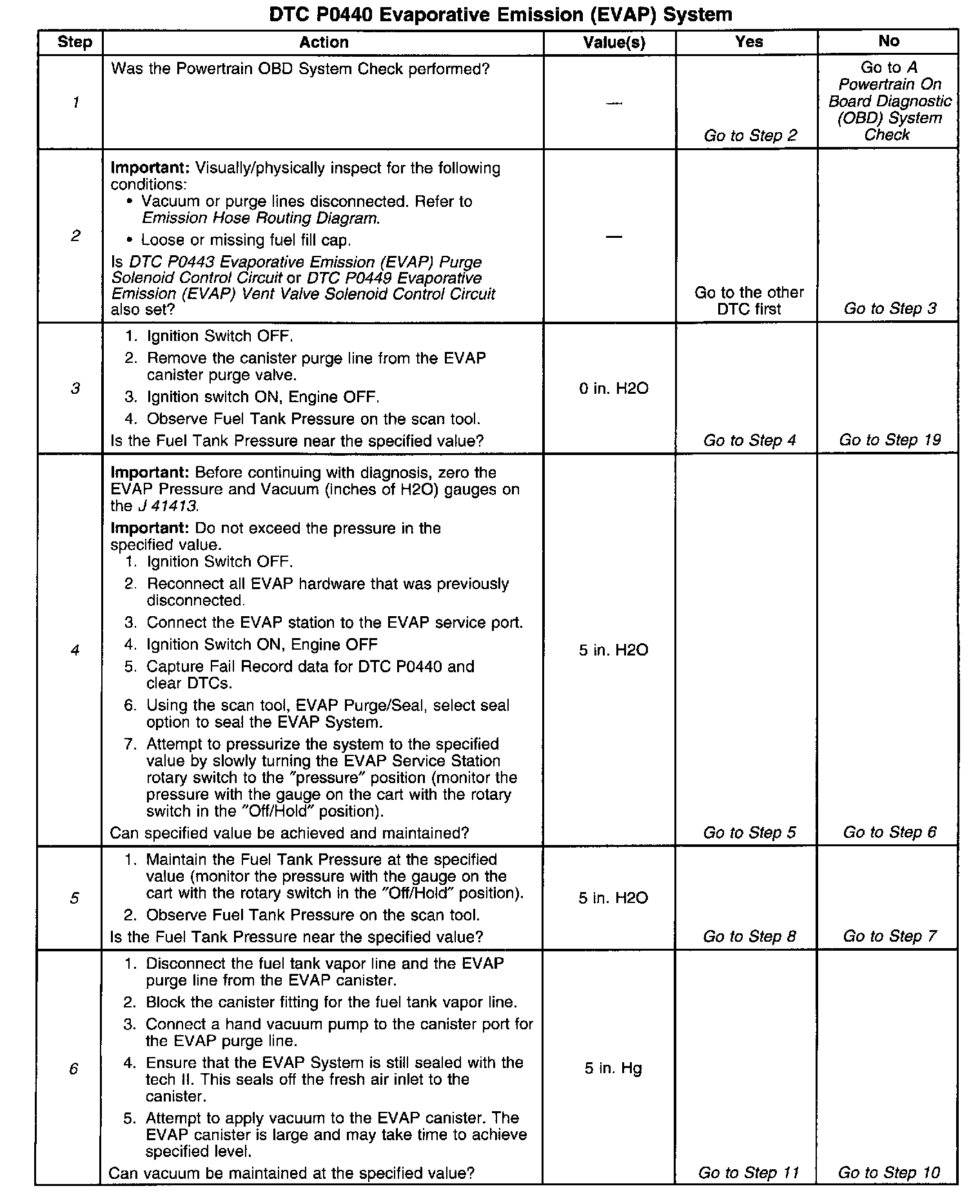 12. Proceed with the DTC P0440 diagnostic table. Reviewing the Fail Records vehicle mileage since the diagnostic test last failed may help determine how often the condition that caused the DTC to be set occurs. This may assist in diagnosing the condition.