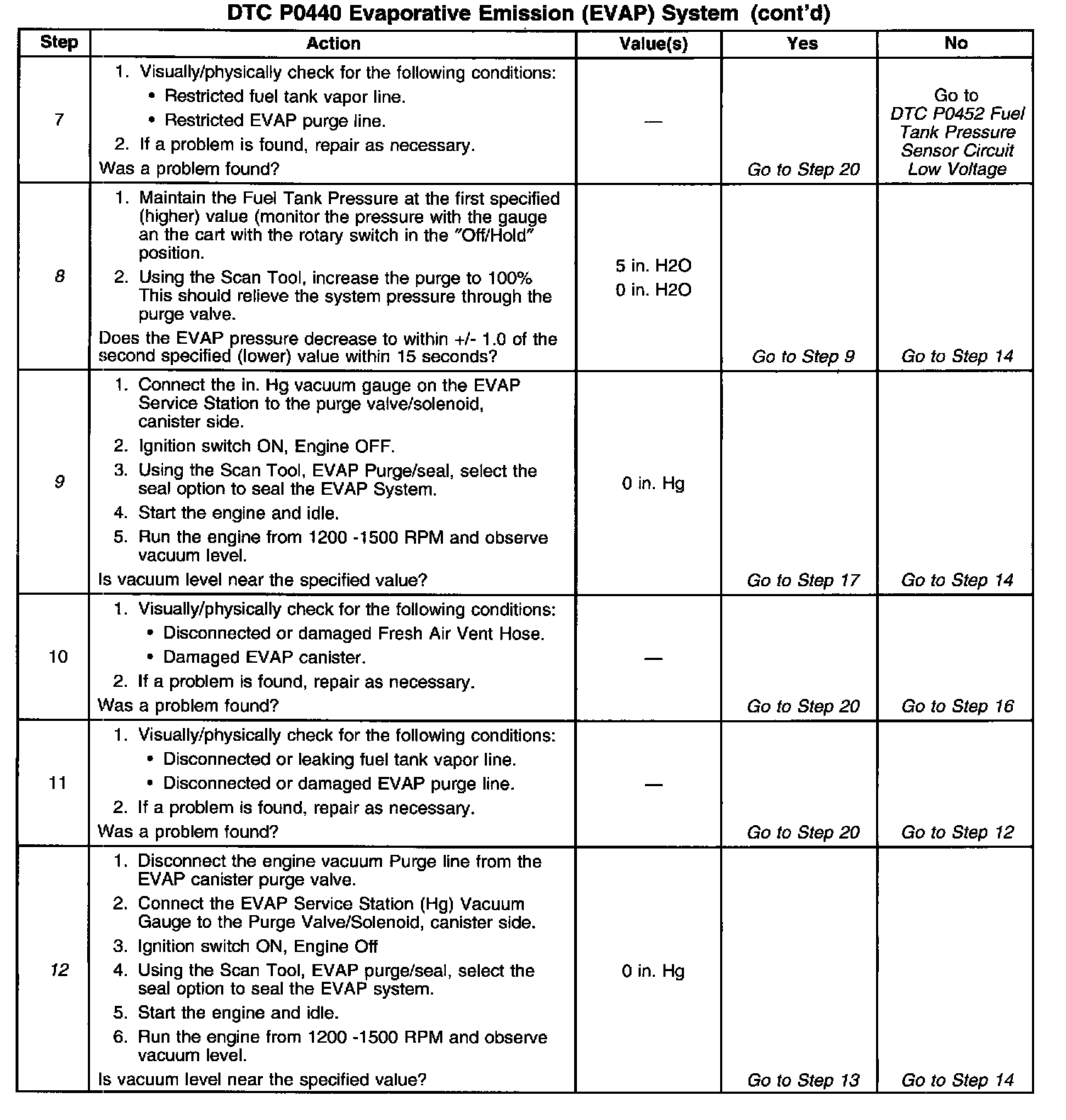 12. Checks for a leaking or stuck open EVAP canister purge valve/solenoid. The valve should be within ±1.0 in HG of the specified value.