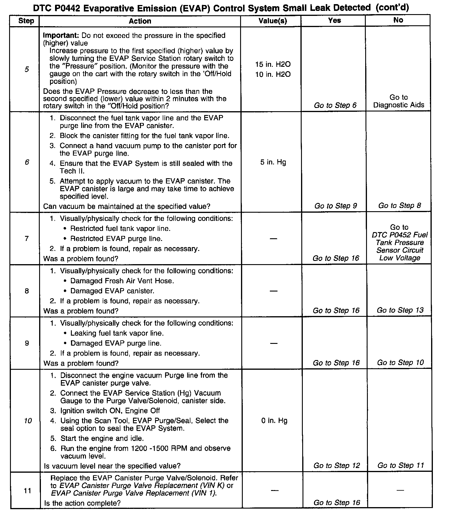 6. Checks for a leak in the Canister, vent line, or a leaking EVAP Vent Valve.