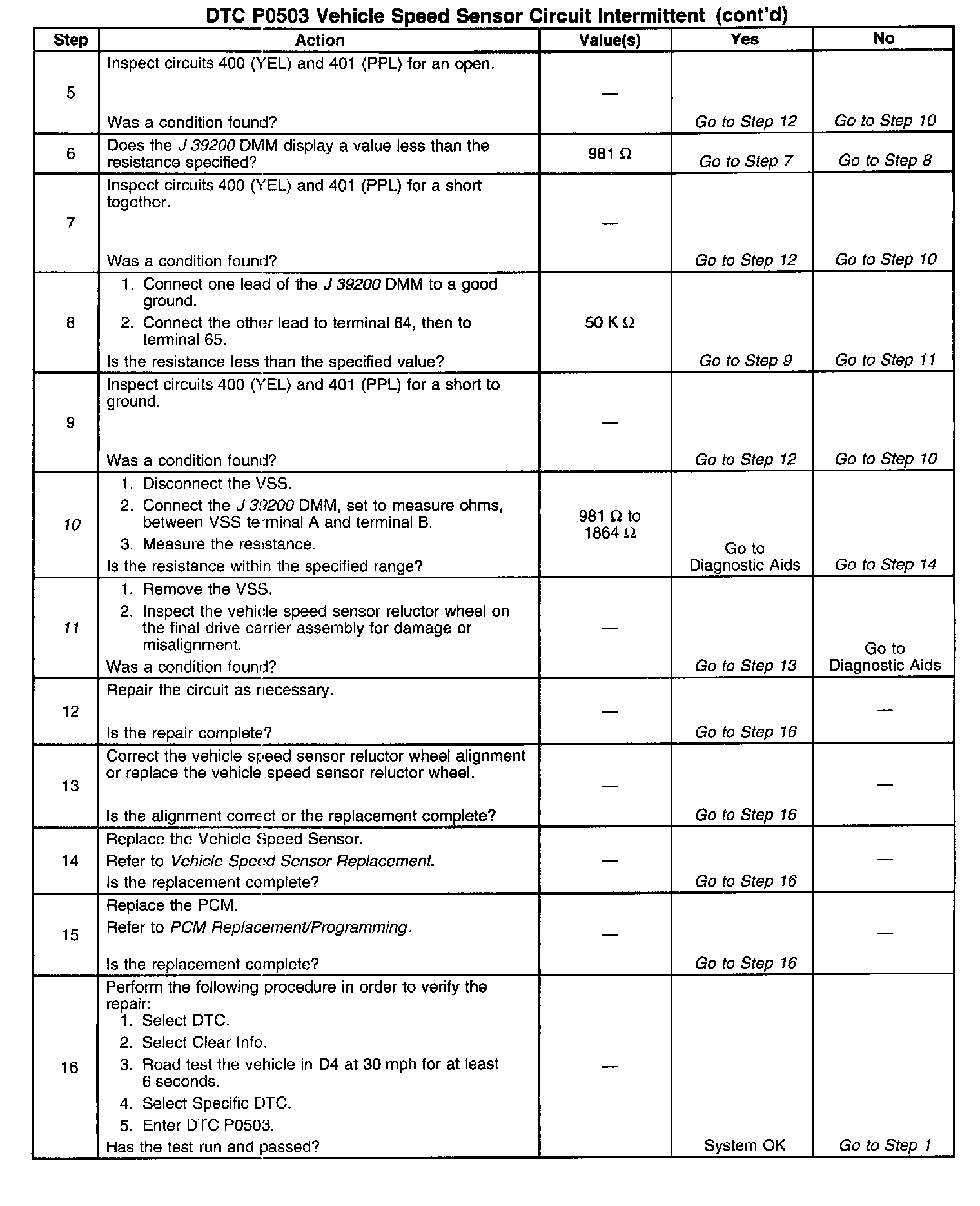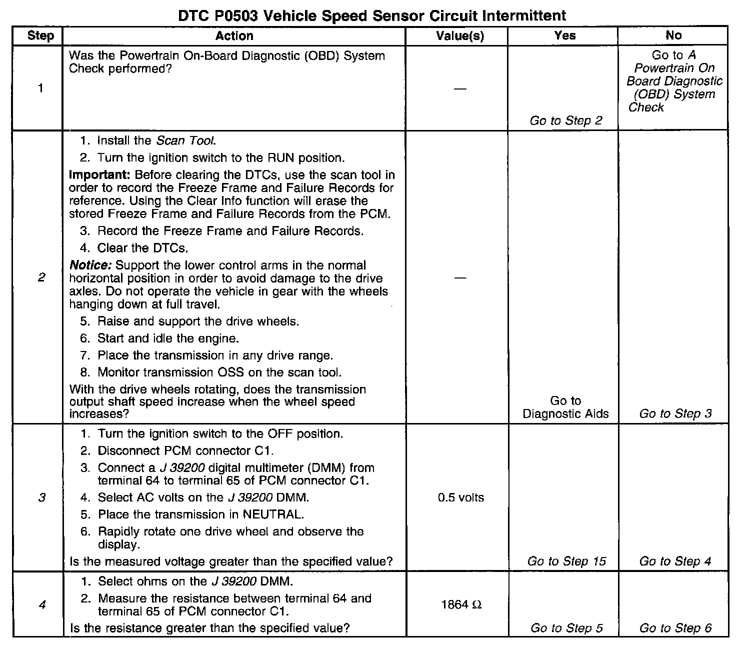 ^ The PCM stores DTC P0503 in PCM history.