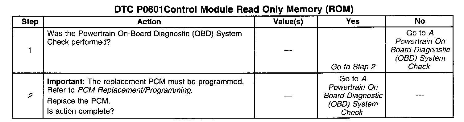 DTC P0601 indicates that the contents of the EEPROM have changed since the PCM was programmed. The only possible repair is PCM replacement. Remember to program the replacement PCM with the correct software and calibration for the vehicle.