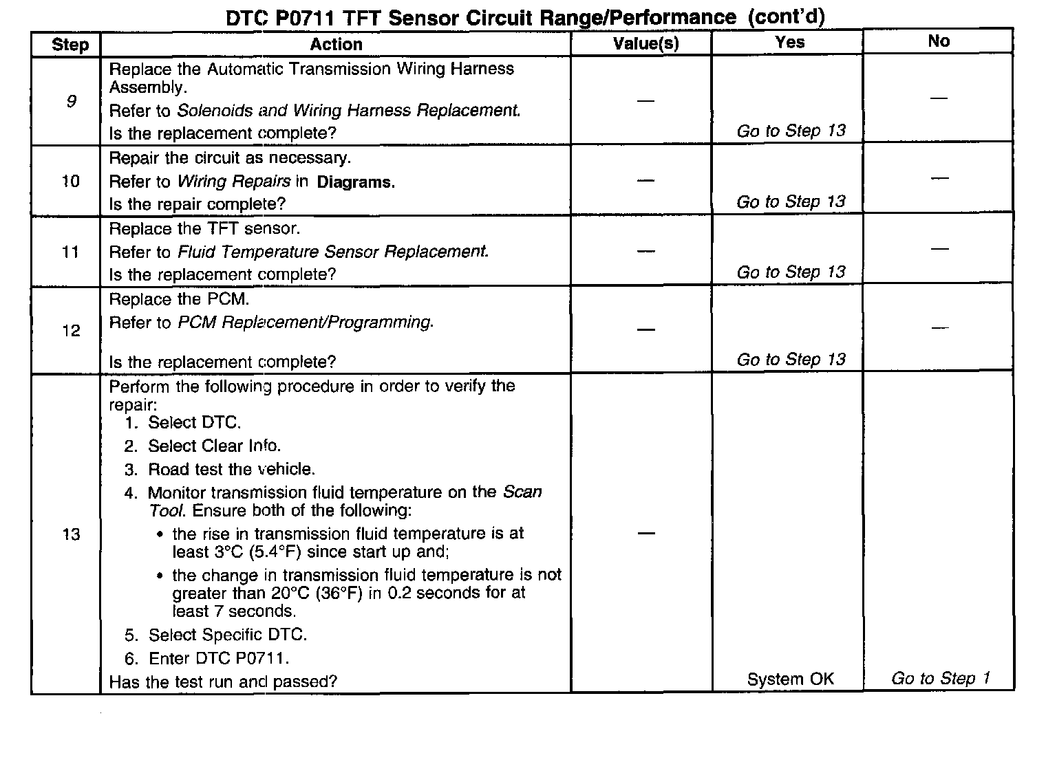 6. This step determines if a condition exists with the PCM or TFT sensor.