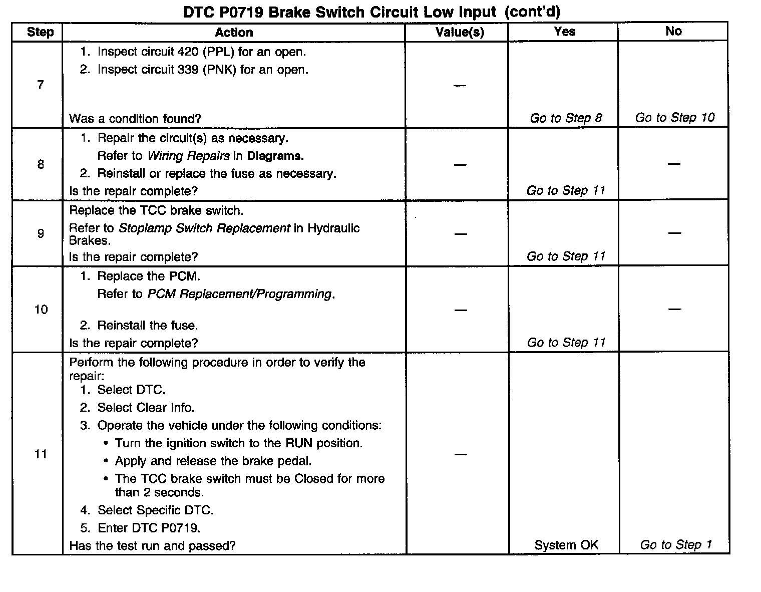 6. This step isolates the fault between the TCC brake switch and the harness.