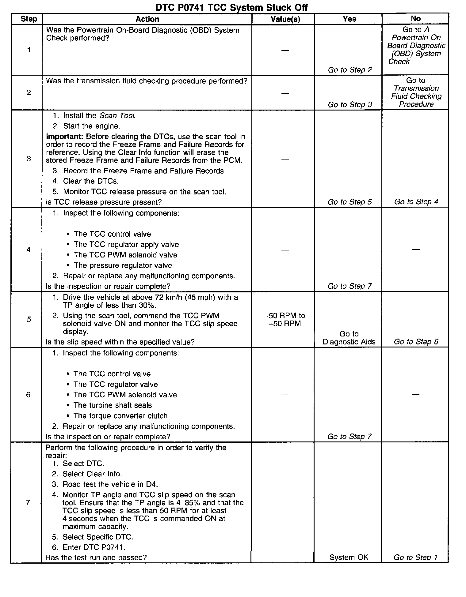 If the PCM detects high torque converter slip when the TCC is commanded ON, then DTC P0741 sets. DTC P0741 is a Type B DTC.