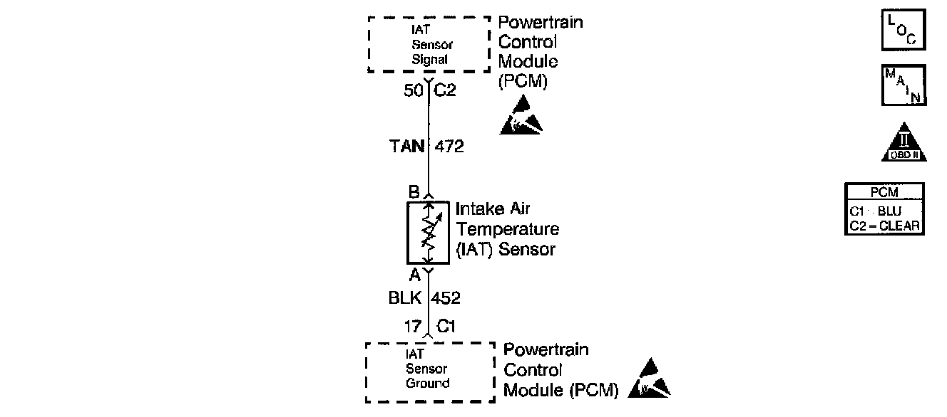 Inspect the wiring harness for damage. If the harness appears to be OK, observe the IAT display on the scan tool while moving connectors and wiring harnesses related to the IAT sensor. A change in the IAT display will indicate the location of the malfunction.
