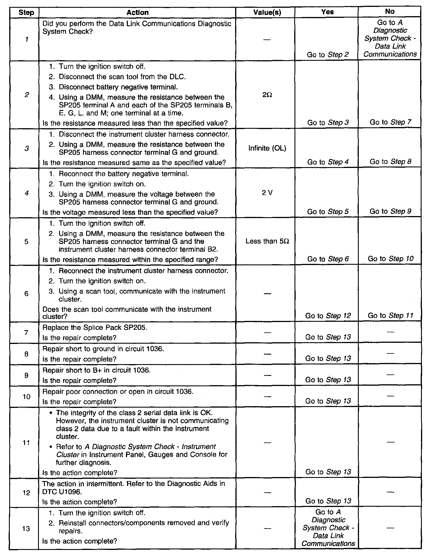 4. This step checks for an open in circuit 1036.