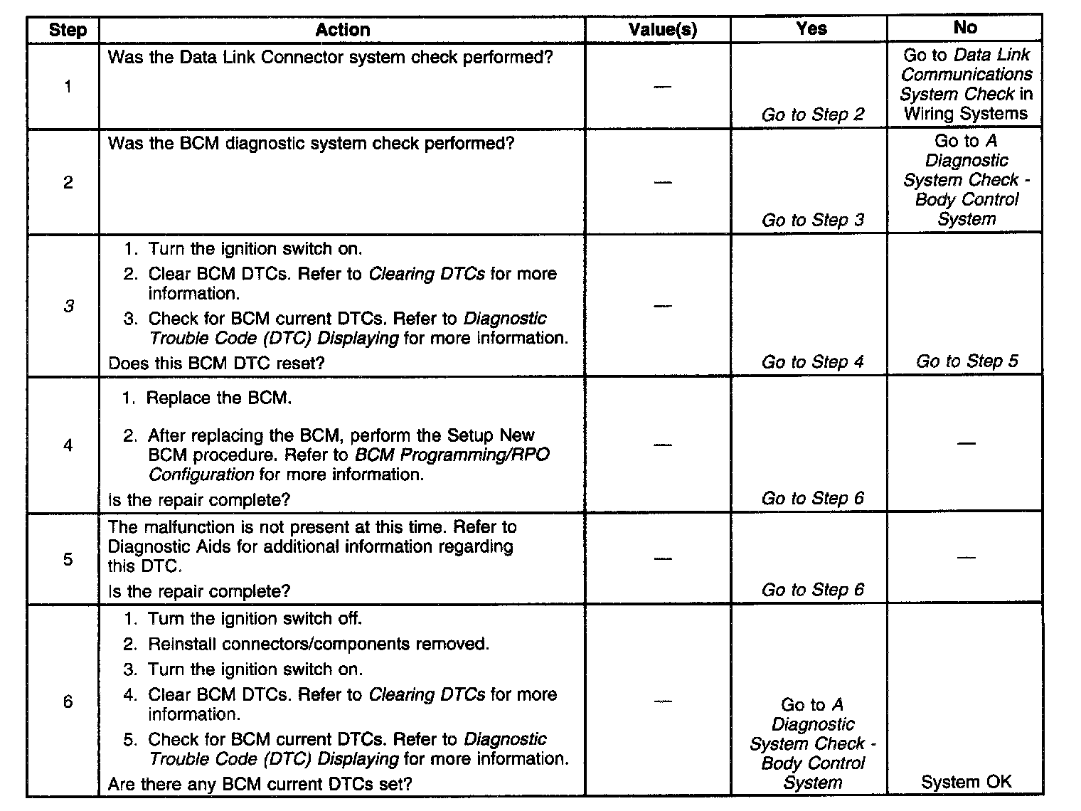 ^ DTC P1626 will set in the Powertrain Control Module (PCM) when the ignition switch is on with the Body Control Module (BCM) disconnected. When BCM diagnostics and repairs are completed, refer to Computers and Control Systems for additional information on PCM related DTCs. Computers and Control Systems