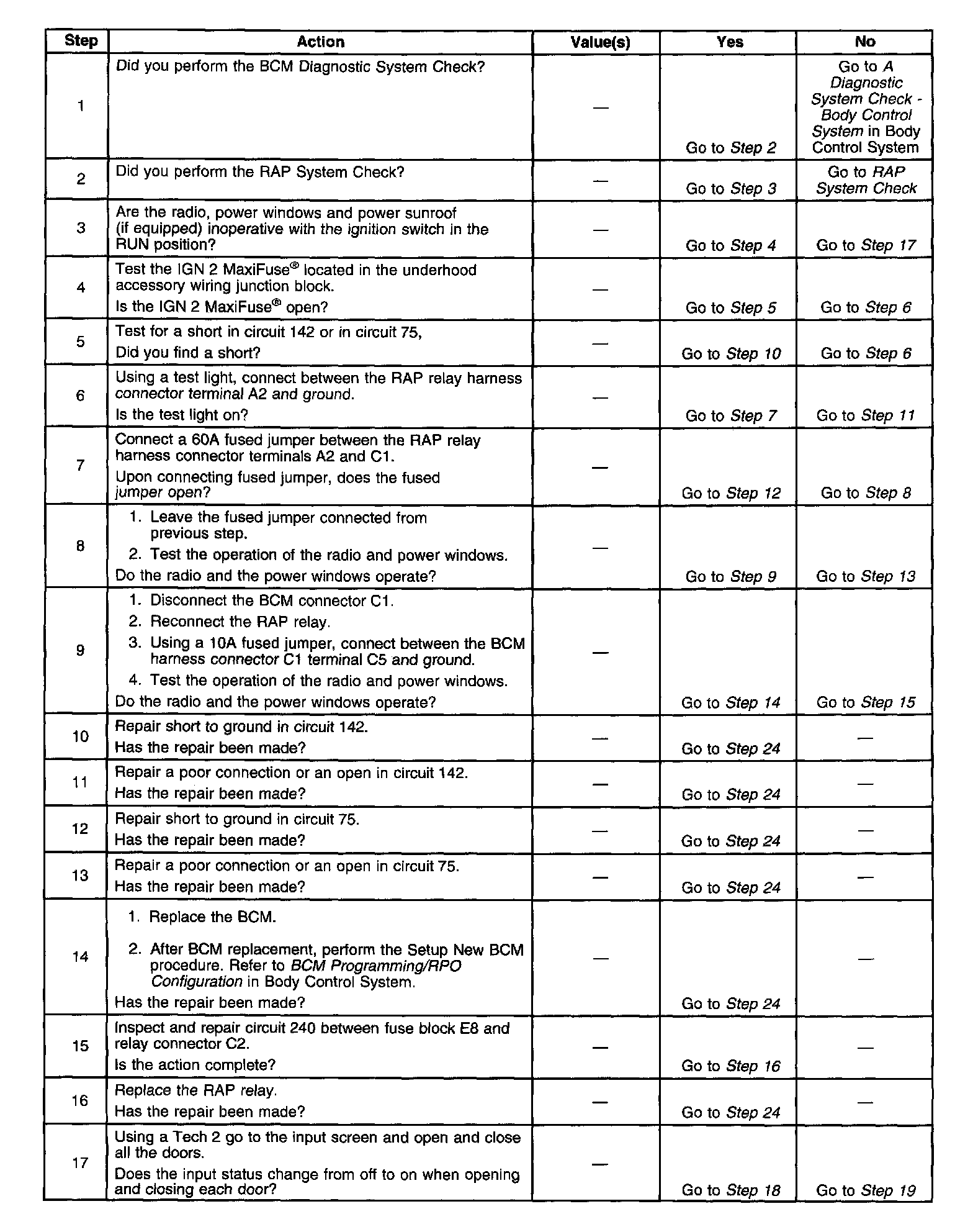 Retained Accessory Power (RAP) - Inoperative