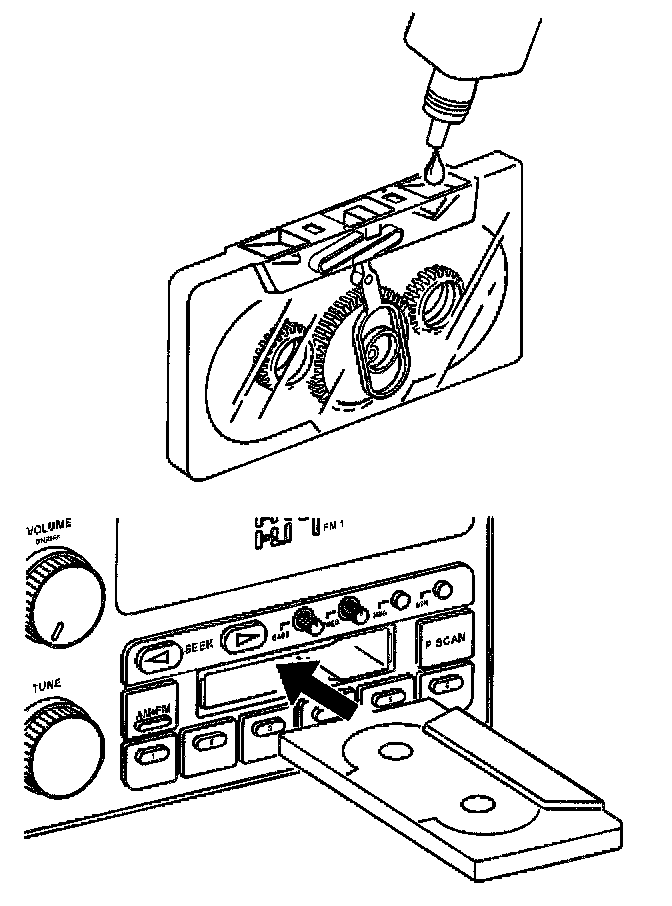 Leave the tape player in the vehicle, since you can reach the parts through the tape door. Perform this service at least every 50 hours of cassette operation. After 50 hours of tape play, CLN (Clean) appears on the display as a reminder. Although the system will still function when this message is displayed, the following conditions may occur until the head and the capstan are cleaned: