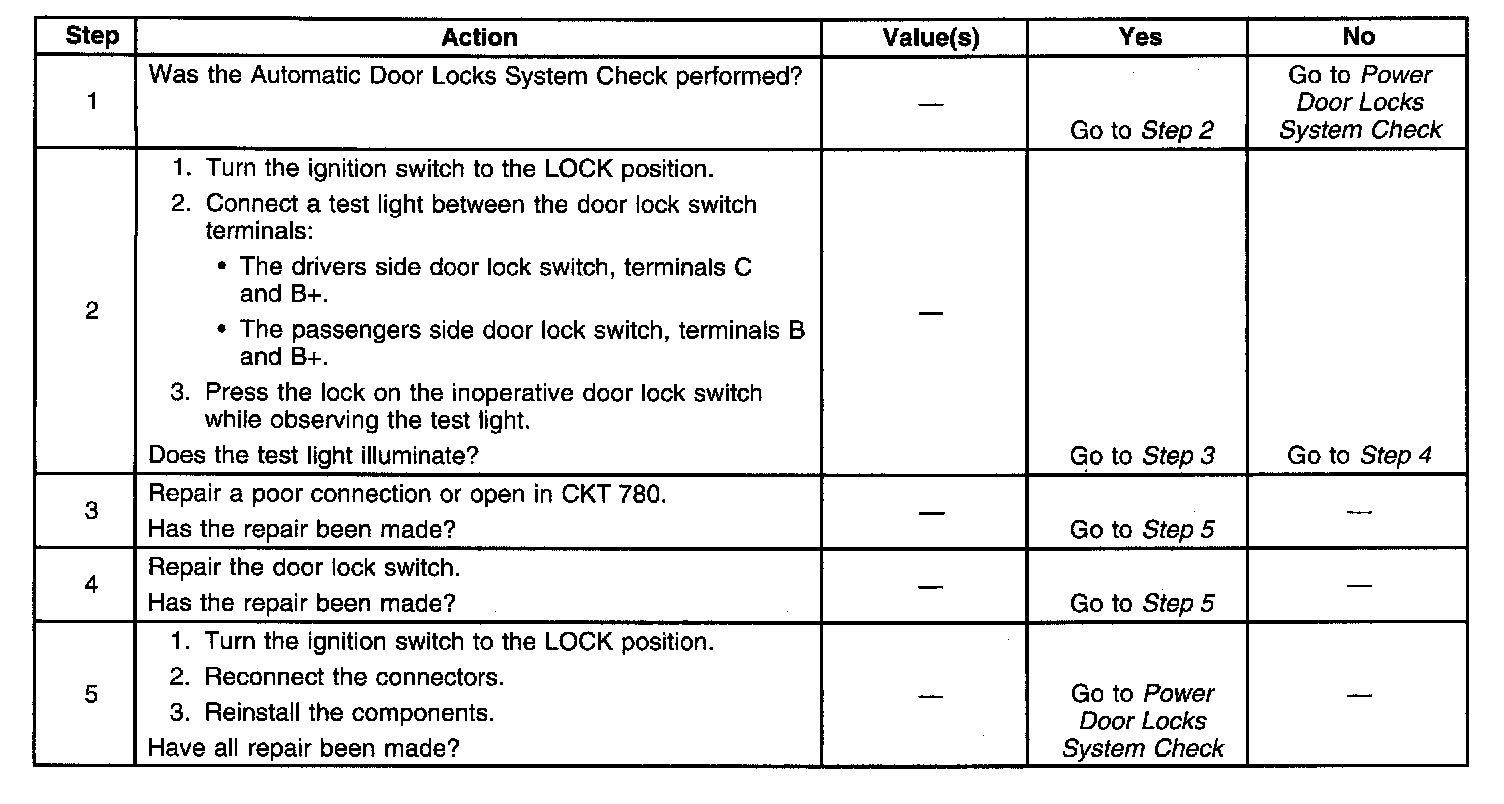 Power Door Locks - Switch Lock Function Inoperative - One