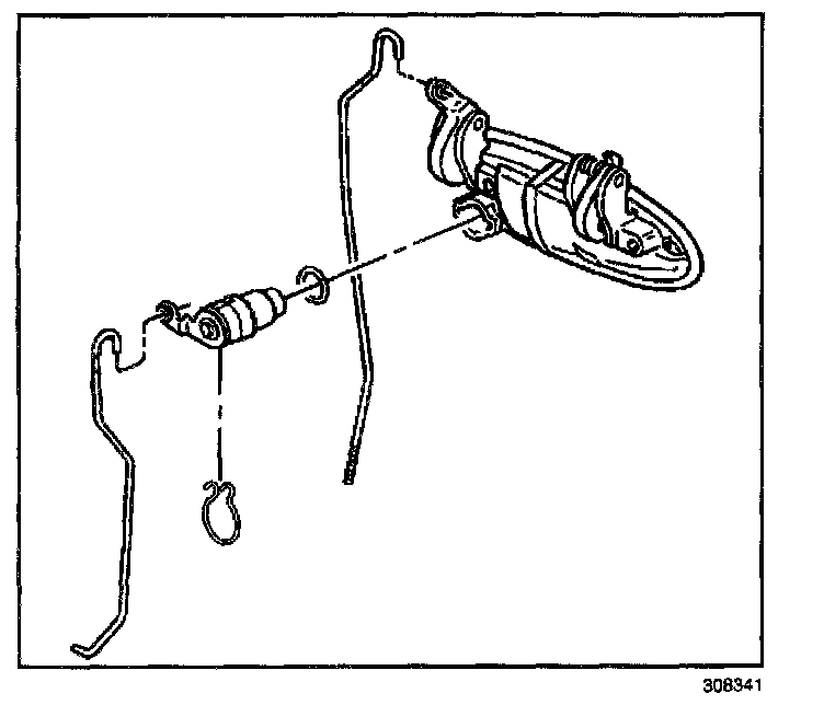 The door locks use the fork bolt lock design which includes a safety interlock feature. The door is secured in a closed position when the door lock fork bolt engages the striker. Lock the doors from the inside by sliding the lock knob rearward. The door may also be locked by using the key.Removal Procedure