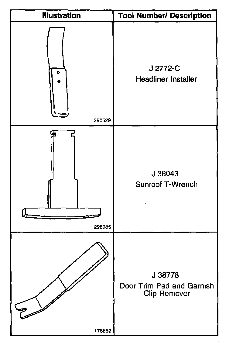 Sunroof / Moonroof: Tools and Equipment