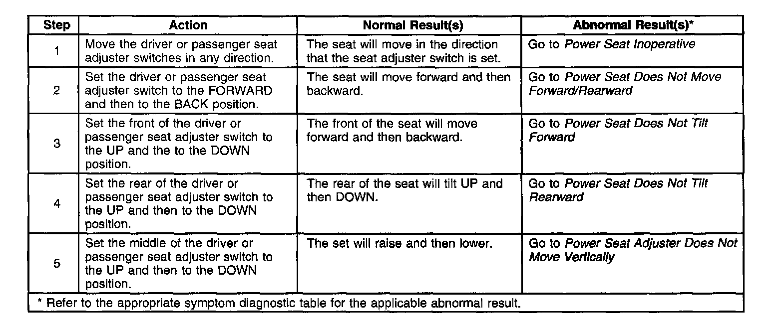 Power Seats System Check: