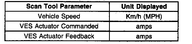 ^ VES Actuator Commanded-This display indicates the amount of current the EBTCM is commanding to the Magnasteer actuator.