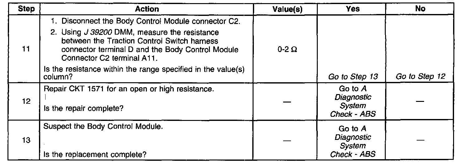 7. Checks if the Body Control Module or the Traction Control Switch is at fault.
