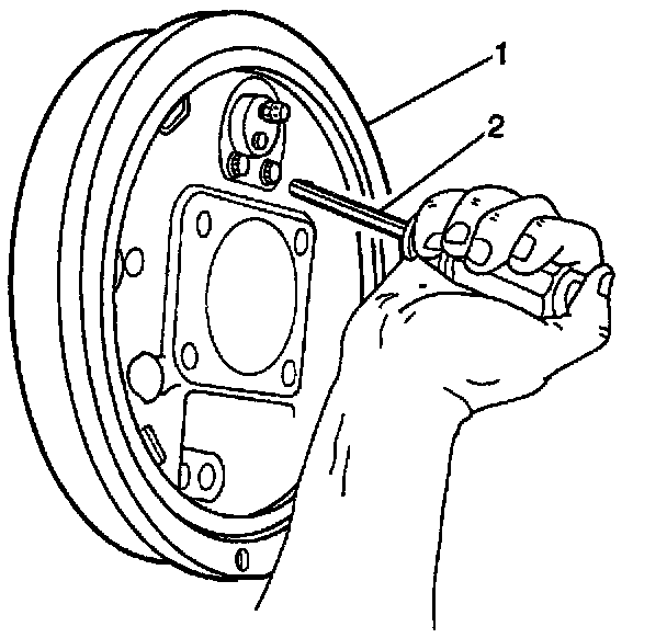 5. Remove the brake drum. Complete the following steps if difficulty is encountered when removing the brake drum: