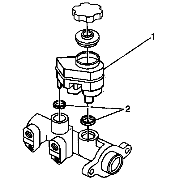 1. Lubricate the new O-rings (5) and the reservoir-to-housing fittings with clean brake fluid.