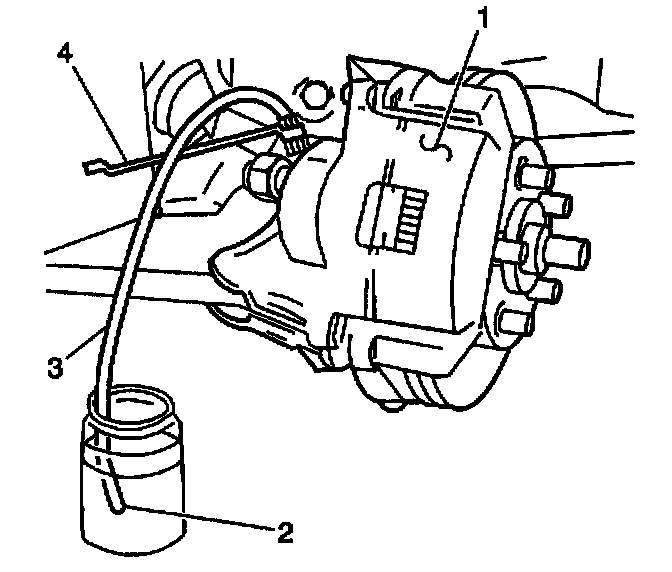 13.2. Place the other end of the bleeder hose into a container in order to collect the draining brake fluid. Do not submerge the hose end in fluid.