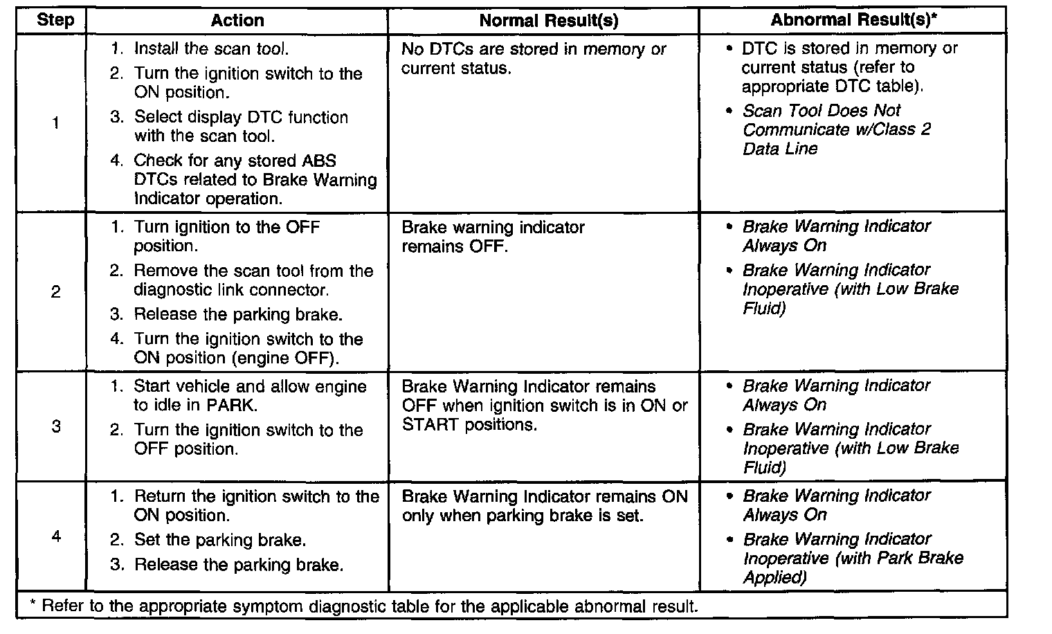 Brake Warning System Check
