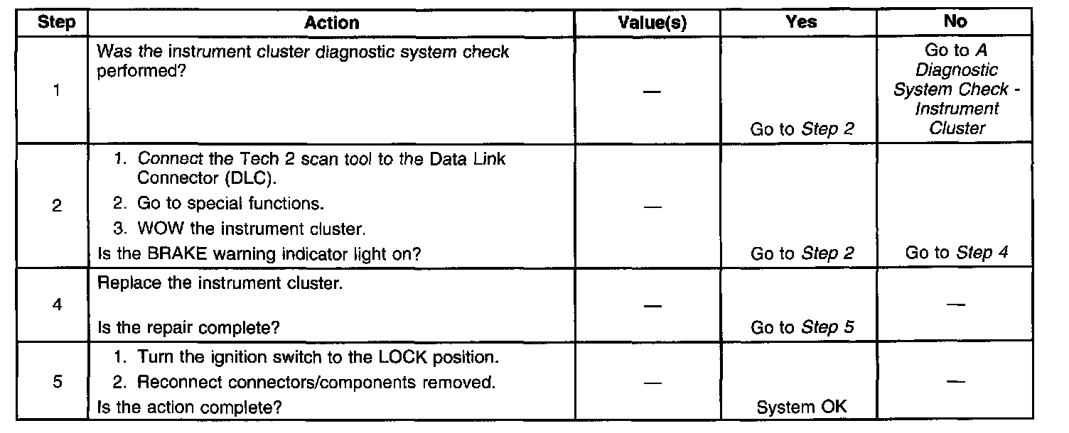 Brake Warning Indicator Inoperative