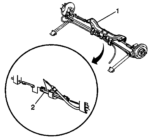 5. Adjust the parking brake by turning the nut on the equalizer (2) while spinning both rear wheels. When either rear wheel starts to drag, back off the nut one full turn.