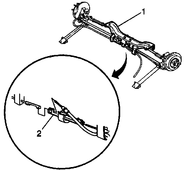 5. Loosen the parking brake cable and the equalizer (2).