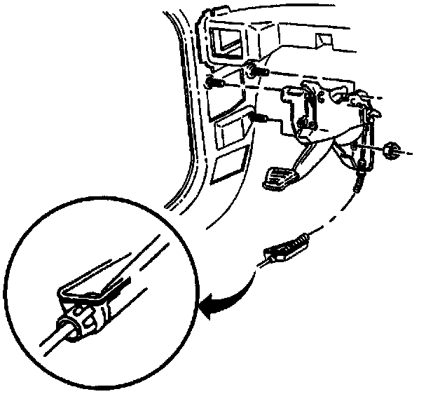 2. Install the cable to the parking brake pedal.
