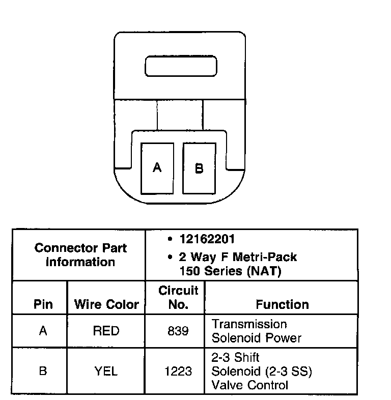 2-3 Shift Solenoid (2-3 SS) Valve Connector, Wiring Harness Side