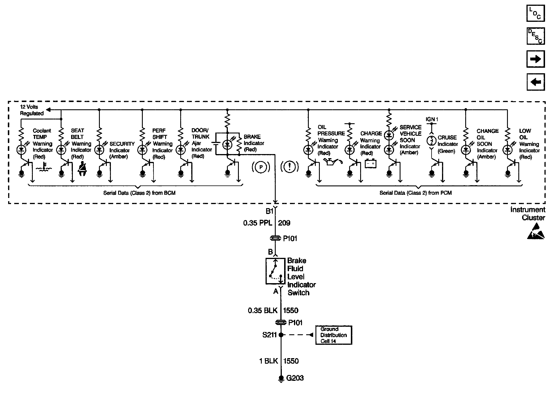 Instrument Cluster Analog Schematics: Brake Fluid Level Switch: