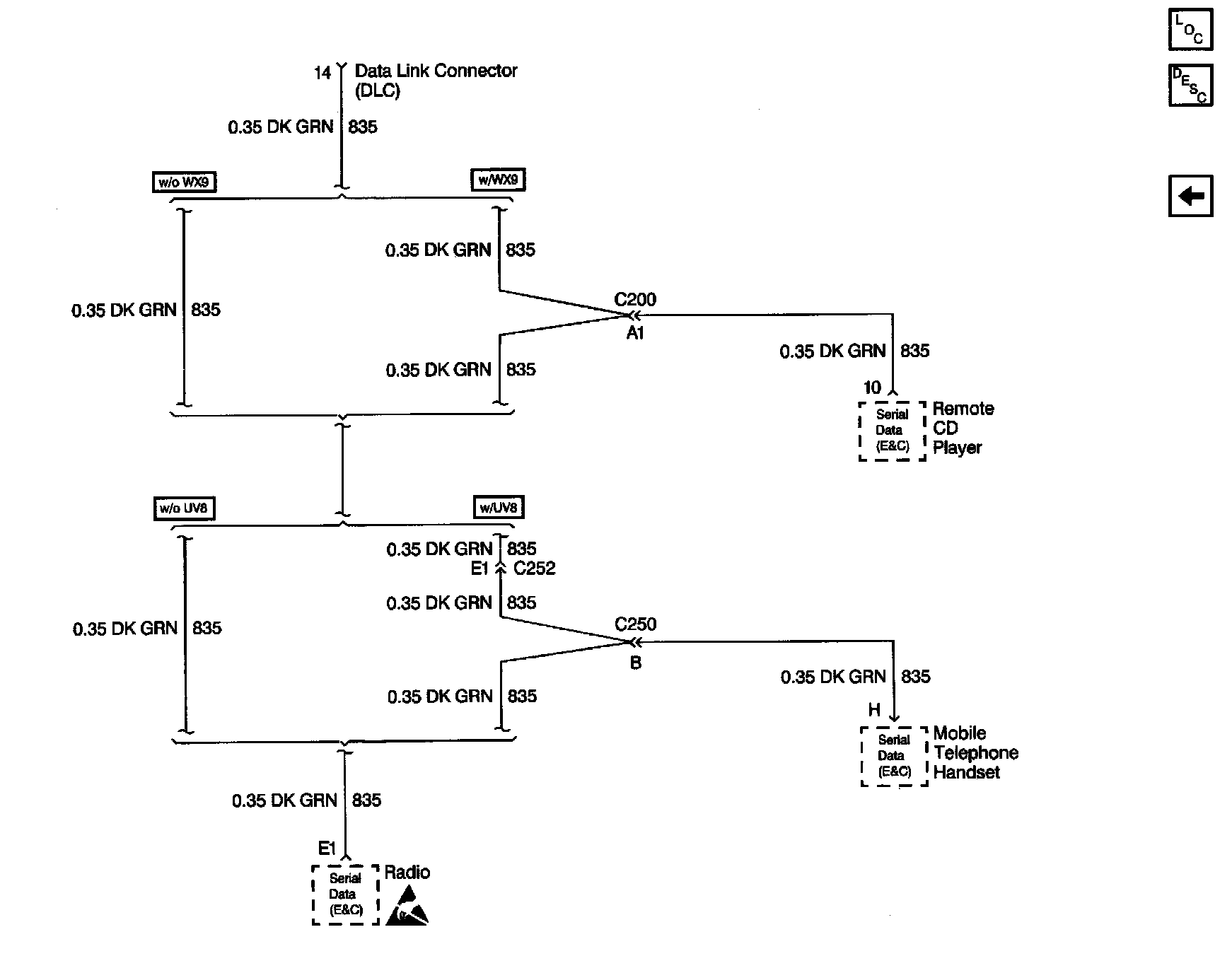 Radio/Audio System Schematics: Remote CD Player, Mobile Telephone Handset, Serial Data: