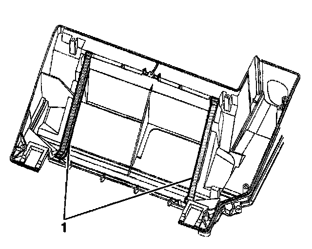 1. Install the heater core side seals (1) from the HVAC lower case.