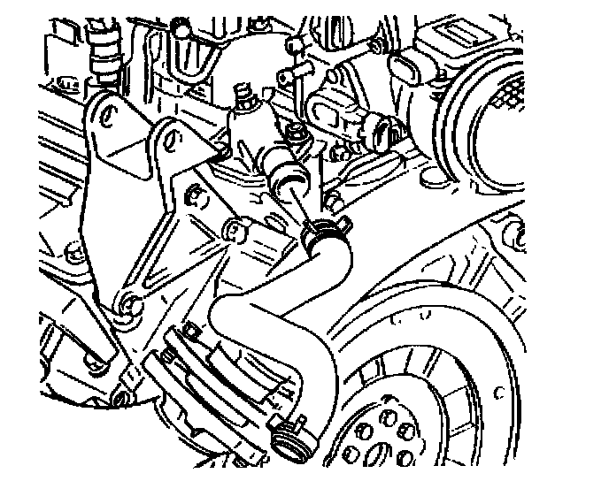 4. Connect the radiator hose to the water outlet housing. Use the J 38185 in order to reposition and install the hose clamp at the water outlet housing.